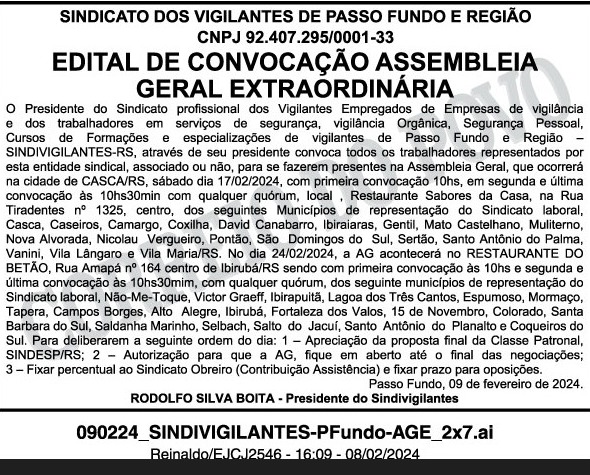 CONVOCAÇÃO DE ASSEMBLÉIA GERAL EXTRAORDINÁRIA