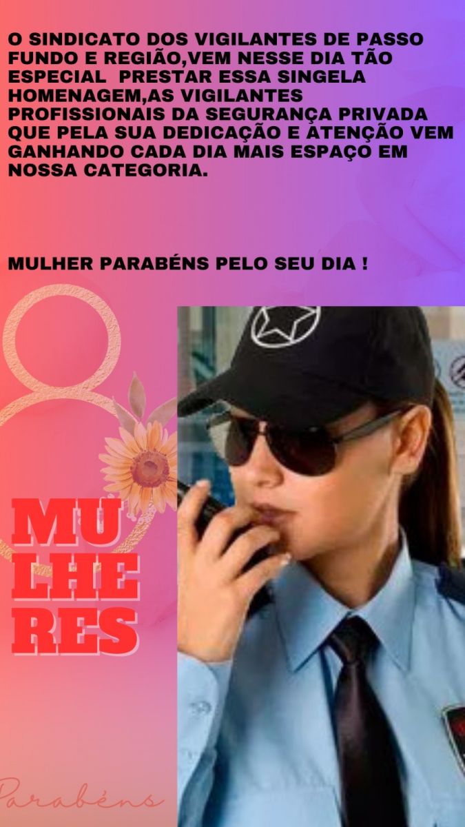 NESTE DIA TÃO ESPECIAL >> Dia internacional da Mulher o Sindicato dos Vigilantes de Passo Fundo e Região - DESTACA PARA VOCE - CONFIRA DEZ PRINCIPAIS DIREITOS TRABALHISTAS DAS MULHERES.